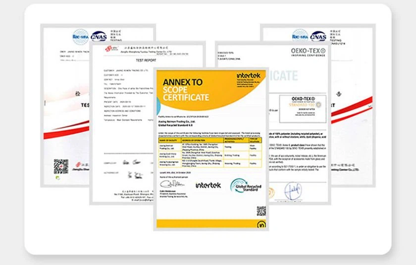 Oeko اور Grs سرٹیفیکیشن معیار کی ضمانت دیتا ہے۔
